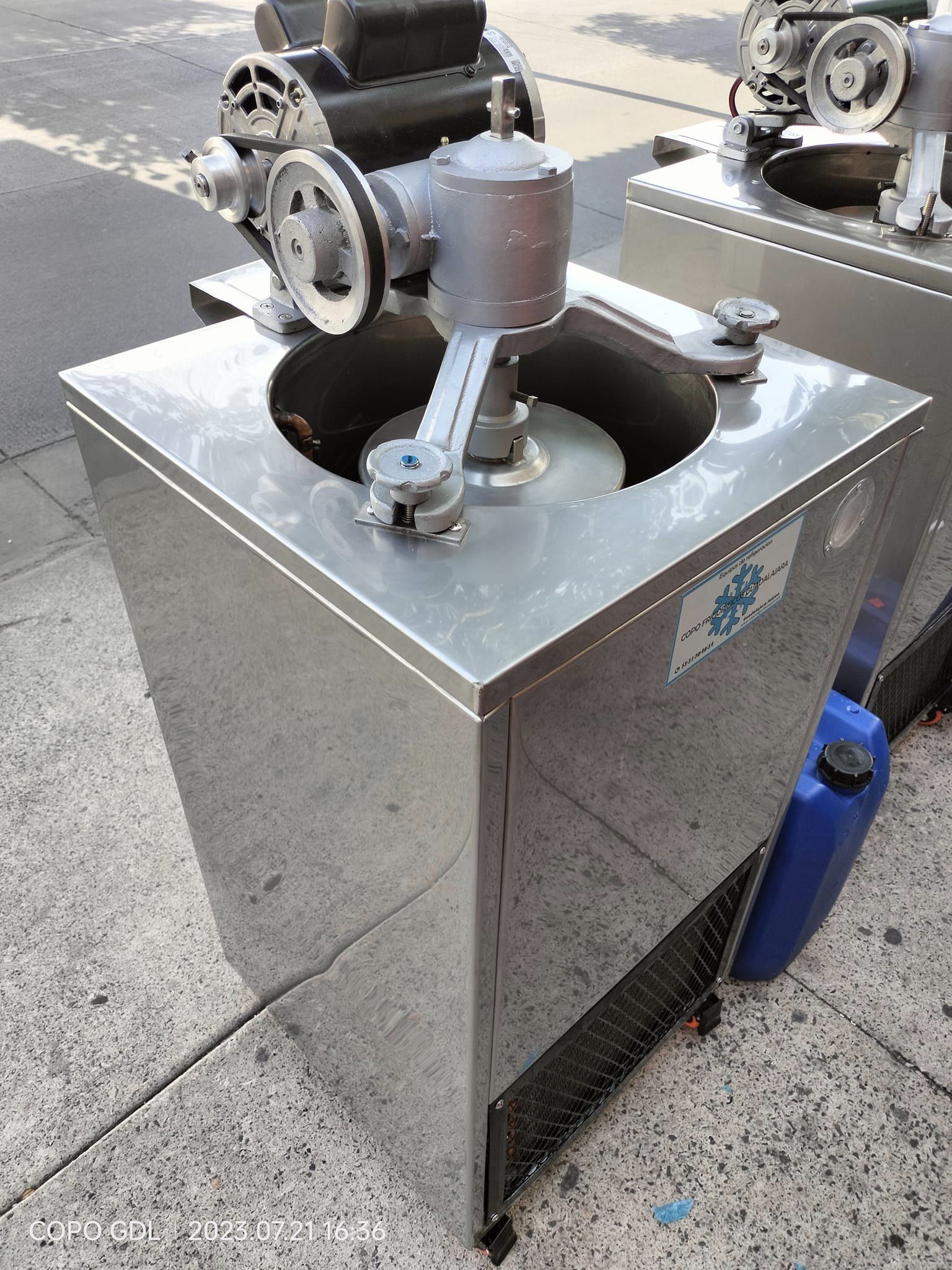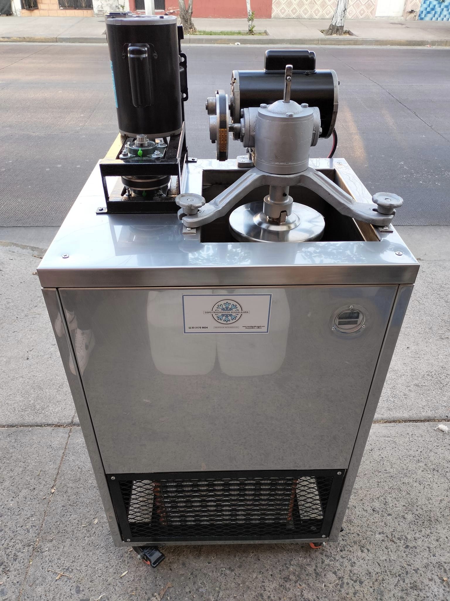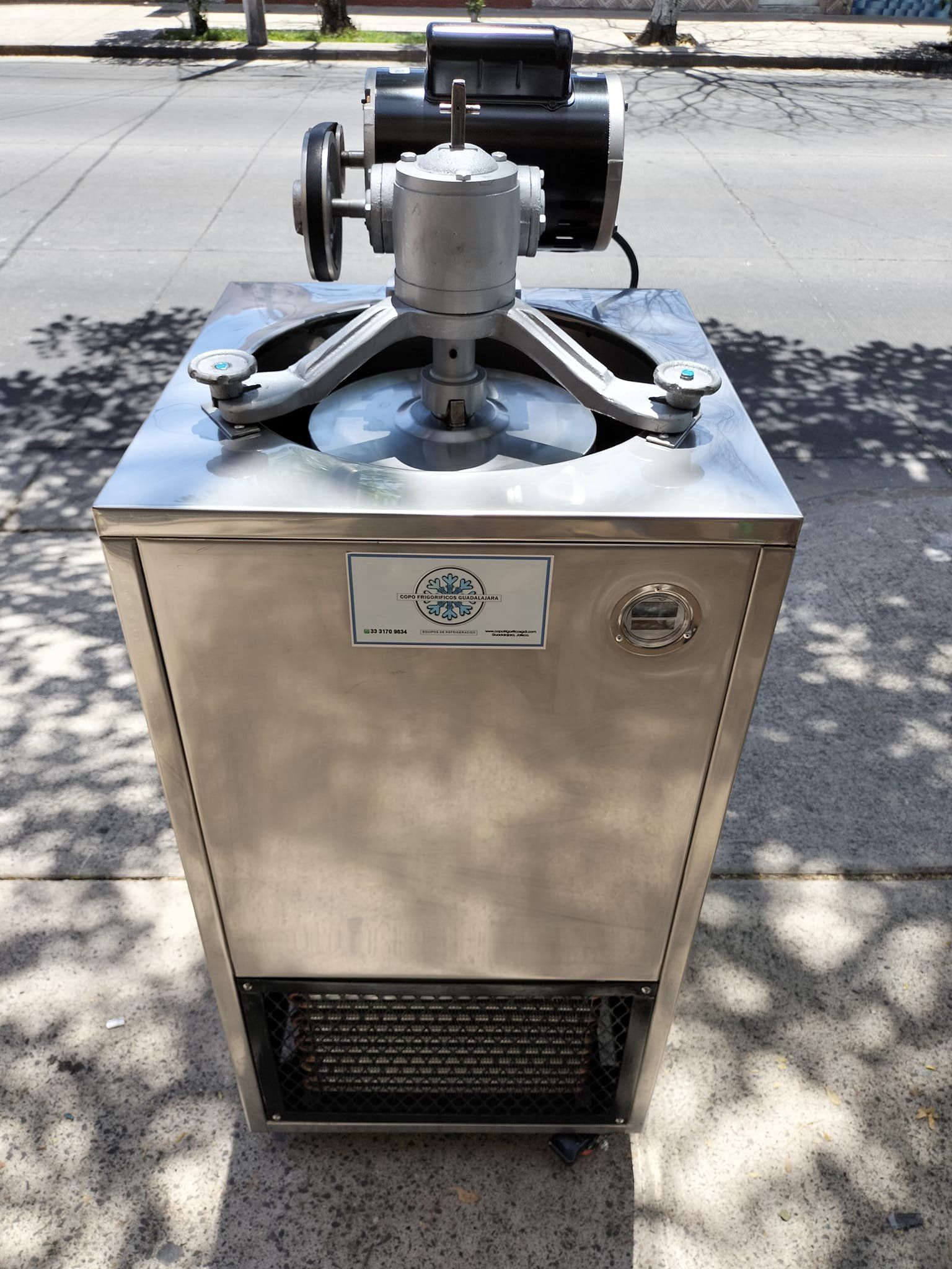 Mueble estructurado en acero inoxidable 304 grado alimenticio,unidad de refrigeración de 1 1/2 hp para gas refrigerante 404 para baja temperatura a 110 o 220 v, garrafa completa de 14 litros con su motor weg de 1/2 hp a 110v,sistema de agitación lateral con su motor weg de 1/2 hp a 110v, escurridor y tapas, termómetro digital, pastillas termicas para protección de el equipo y llantas incluidas para su movilidad